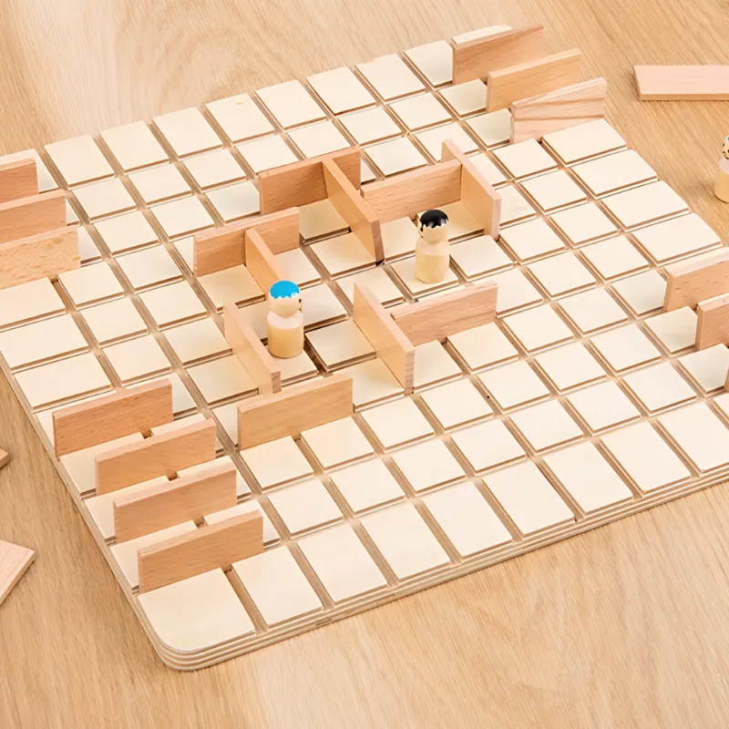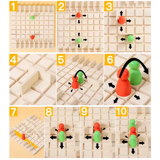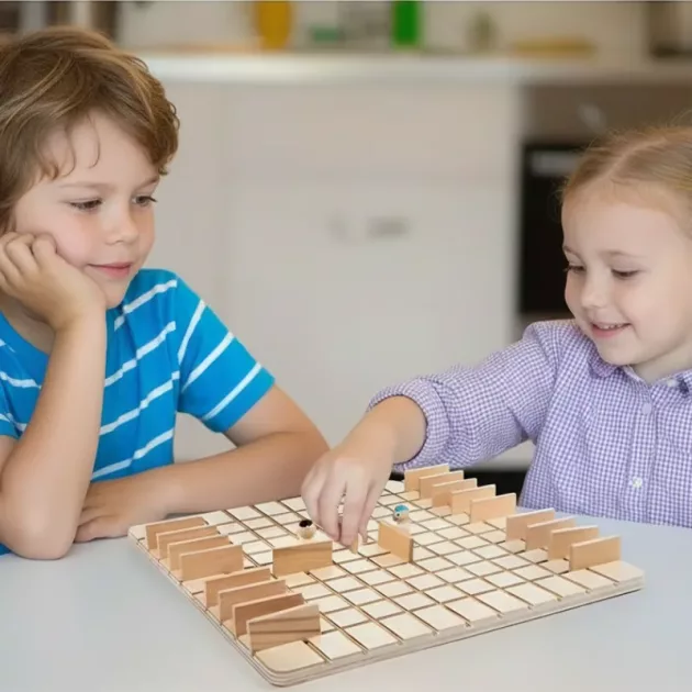 Mindennap kihívást jelent a fiatal elmének ezzel a lebilincselő folyosójátékkal. A faelemek biztonságosnak, simának és kellemesnek érződnek a kis kezekben. Minden játszás minőségi idővé válik, ahol okos húzások és boldog mosolyok születnek.