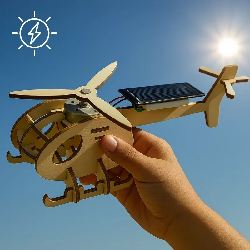Végre elkészítettem a saját fahelikopterem, és megmutattam a szüleimnek. Nagyon lenyűgözte őket, hogy a napelemes részt egyedül fejtettem meg.