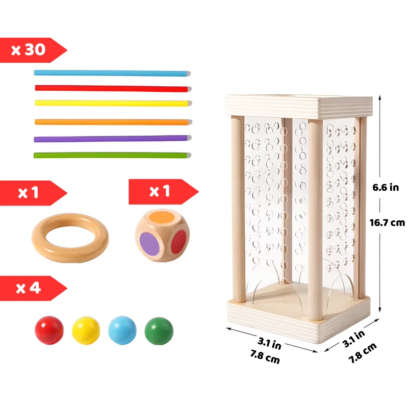Élénk színek és ötletes kihívások hozzák össze a családot nevetésre. Az ügyesség fejlődik, miközben a kezek mozognak, az elme gondolkodik, stratégiák születnek. Élvezd az izgalmas köröket, és figyeld, ahogy a csapatmunka fejlődik játék közben. Ez a fapálcás húzogatós játék minden összejövetelt frissé tesz új játékmódokkal.